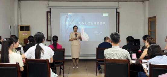 李云老師以專業(yè)嚴謹?shù)氖谡n態(tài)度和生動貼切的案例教學,贏得了全體學員的高度認可。在商務形象管理環(huán)節(jié),老師逐一指導著裝、儀容、舉止細節(jié),幫助員工迅速掌握職業(yè)形象要領;在接待與拜訪禮儀部分,通過真實場景還原和分組實景演練,參訓人員不僅學會了禮貌迎送、有序引導、位次安排等關鍵技能,更增強了跨部門協(xié)作與團隊配合意識;宴請禮儀模塊則聚焦中西餐文化差異和商務餐飲禮儀,老師親身示范、逐個糾正,使學員在互動中真正理解禮儀背后的文化內涵與溝通智慧。