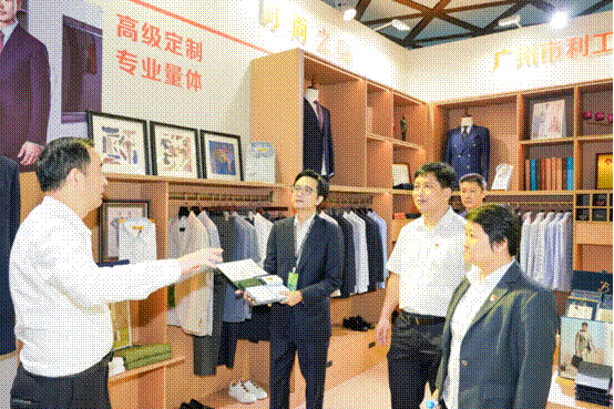 在共建活動(dòng)中,大家來(lái)到廣東時(shí)裝周的利工民主題展位前,深入了解利工民服裝定制業(yè)務(wù)開(kāi)展情況。廣東省服裝服飾行業(yè)協(xié)會(huì)黨支部書(shū)記劉岳屏介紹了目前廣東服裝定制的整體情況以及相關(guān)智能制造企業(yè)情況。雙方就如何加強(qiáng)資源共享,促進(jìn)服裝定制服務(wù)做強(qiáng)做大,助力廣東定制“出圈”“破圈”進(jìn)行了交流探討。